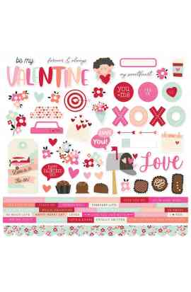 Kit di 12 patterned paper 12x12" (30,5x30,5 cm), stampate fronte-retro, più un foglio 12x12" di adesivi pretagliati, Journal Bits, 6x12" Chipboard Stickers, 1 Washi Tape.