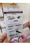 Plancia di timbri trasparenti.